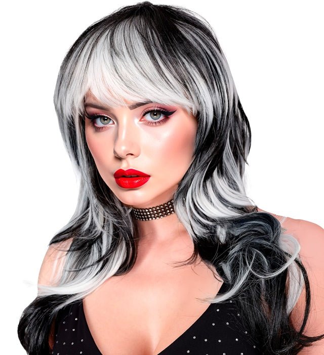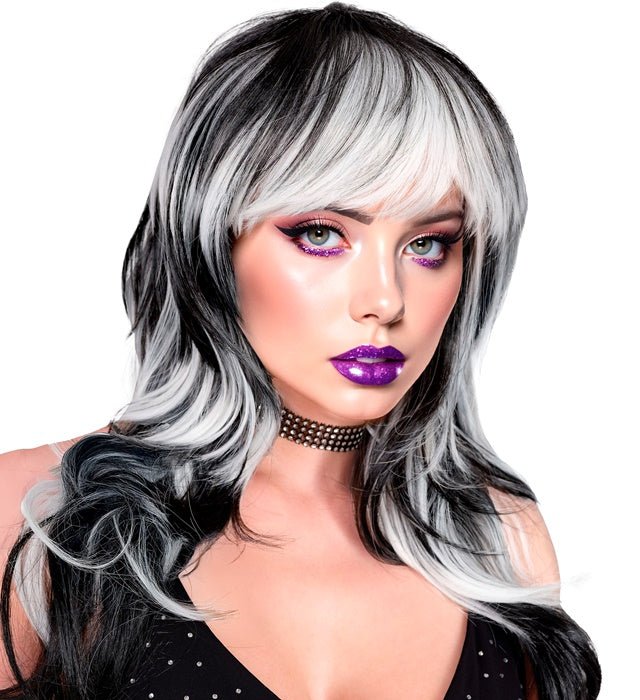 La parrucca Vampire Lady Black/White è un accessorio di grande effetto che conferisce immediatamente un aspetto misterioso e caratteristico a un costume o a una festa. Il contrasto di colori bianco e nero rende questa parrucca particolarmente adatta a costumi da vampiro, gotici e di altro genere