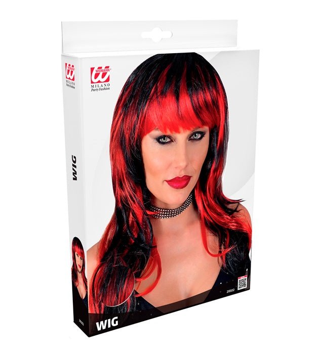 La parrucca Vampire Lady Black/Red è un accessorio di grande effetto che conferisce immediatamente un aspetto potente e misterioso a un costume o a una festa. La combinazione di nero e rosso rende questa parrucca particolarmente adatta a costumi da vampiro, gotici e di altro genere