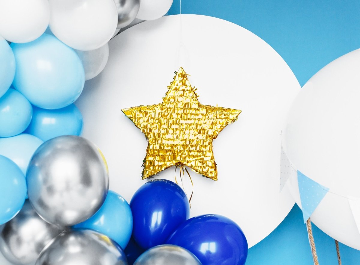 Contenuto: Pignatta a forma di stella di colore oro metallizzato, da riempire circa con dolcetti, dimensioni. 44,5 x 42,5 x 9 cm.