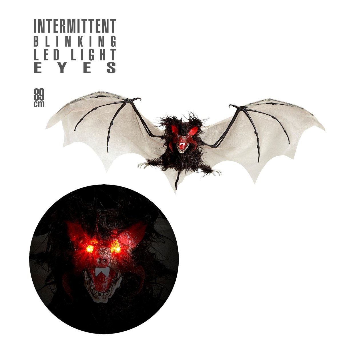 Pipistrello finto di Halloween con luce 89 cm