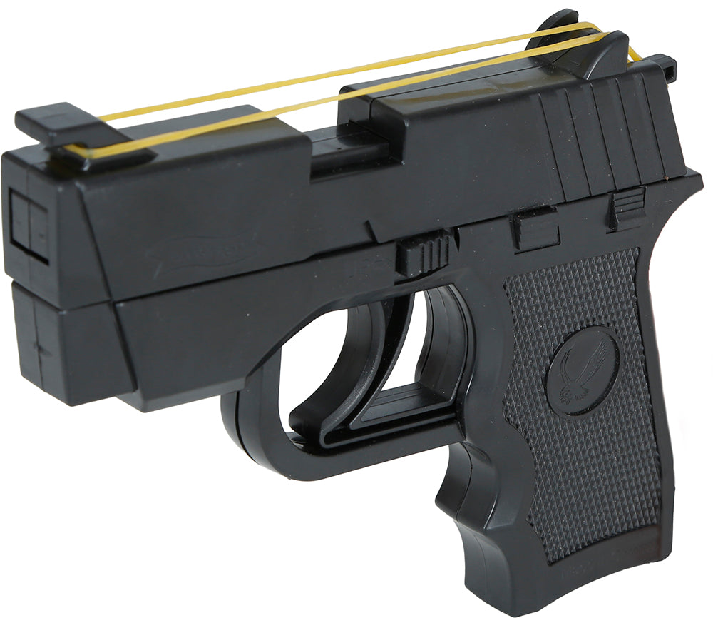 Inizia il divertimento con questa pistola ad elastici compatta e simpatica!