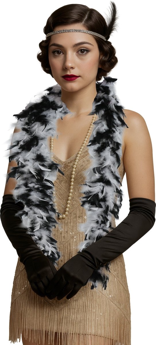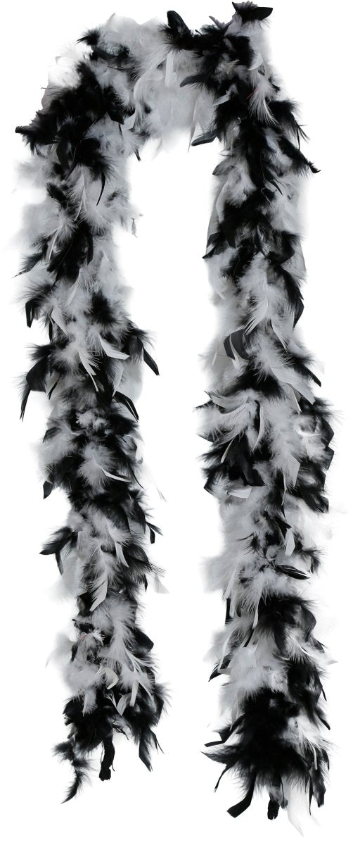 Completa qualsiasi vestito con questo elegante boa di piume bianche e nere. Perfetto per feste, serate a tema, costumi teatrali o carnevale. Il boa è morbido al tatto e corposo, per aggiungere un tocco di glamour al tuo look.