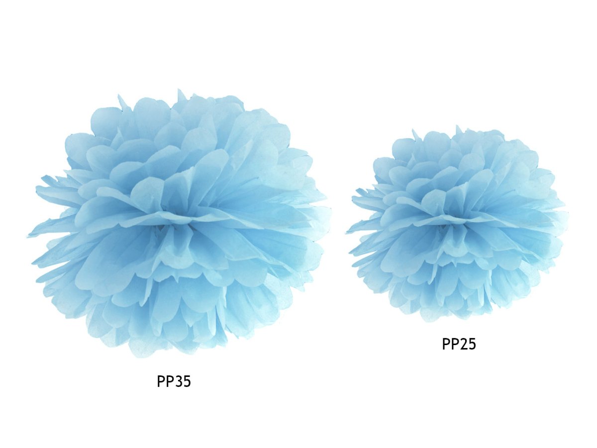 Contenuto: Pompom in carta velina, azzurro nebbioso, misura 35 centimetri.
