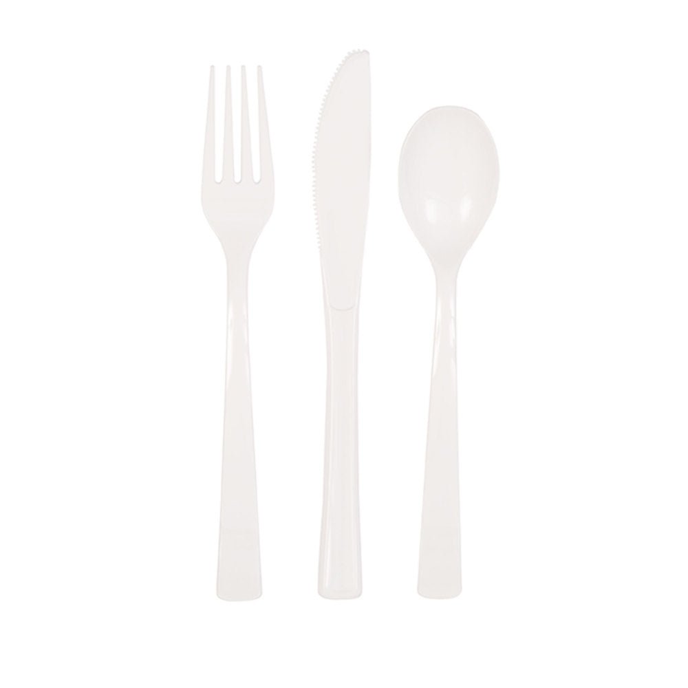 Contenuto della confezione:Posate bianche in plastica 18 pezzi