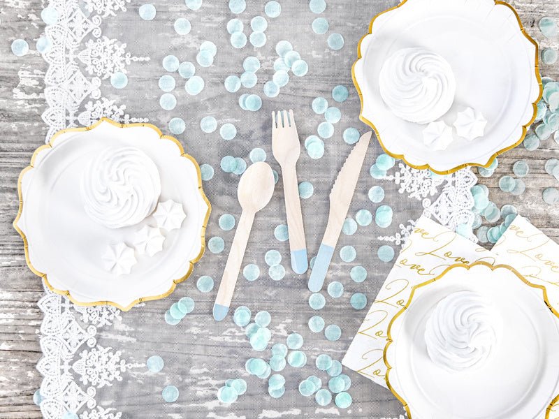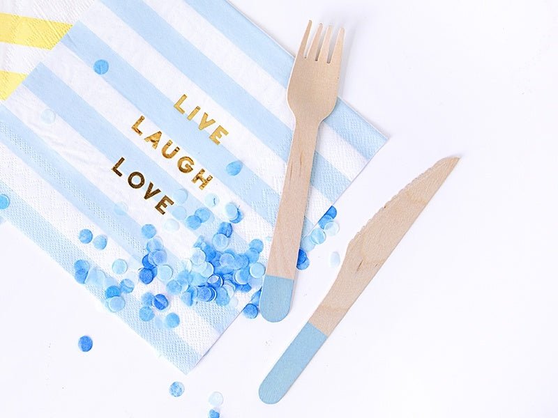 Contenuto della confezione:Posate in legno azzurro 16cm 18 pezzi