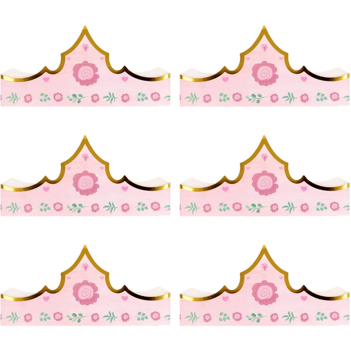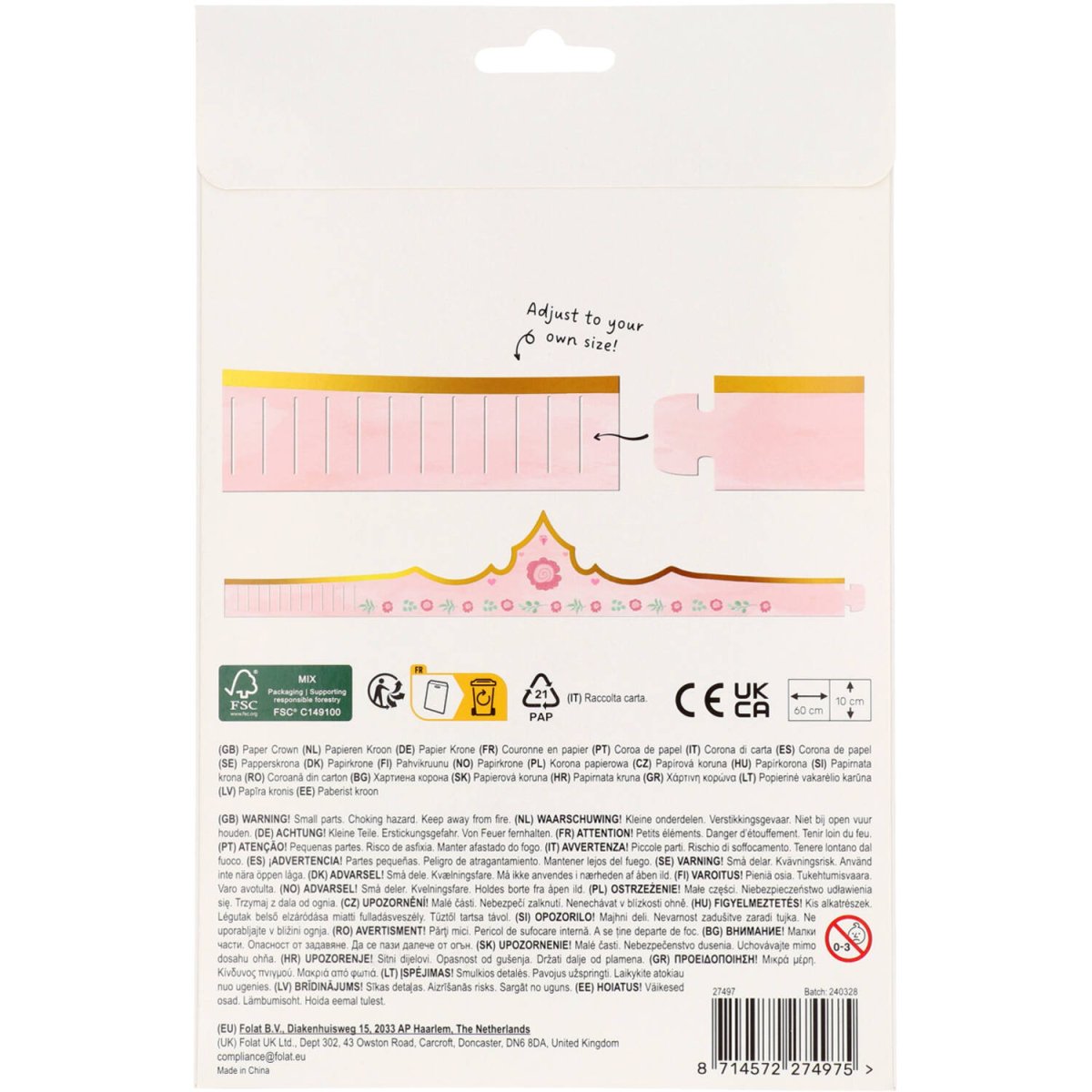 Solo per le vere principesse. Corone - Pretty Princess - 6 pezzi. Contenuto: 6 corone di carta. Da utilizzare per esempio durante le seguenti occasioni di festa: Festa per bambini, Compleanno, Festa a tema. Coroncine di carta rosa chiaro con dolci fiorellini e un bordo dorato e brillante grazie alla tecnica di stampa a caldo. Le corone sono alte circa 10 cm e lunghe 60 cm. Le corone da principessa possono essere facilmente adattate alle dimensioni. Queste corone appartengono alla collezione Pretty Princess di