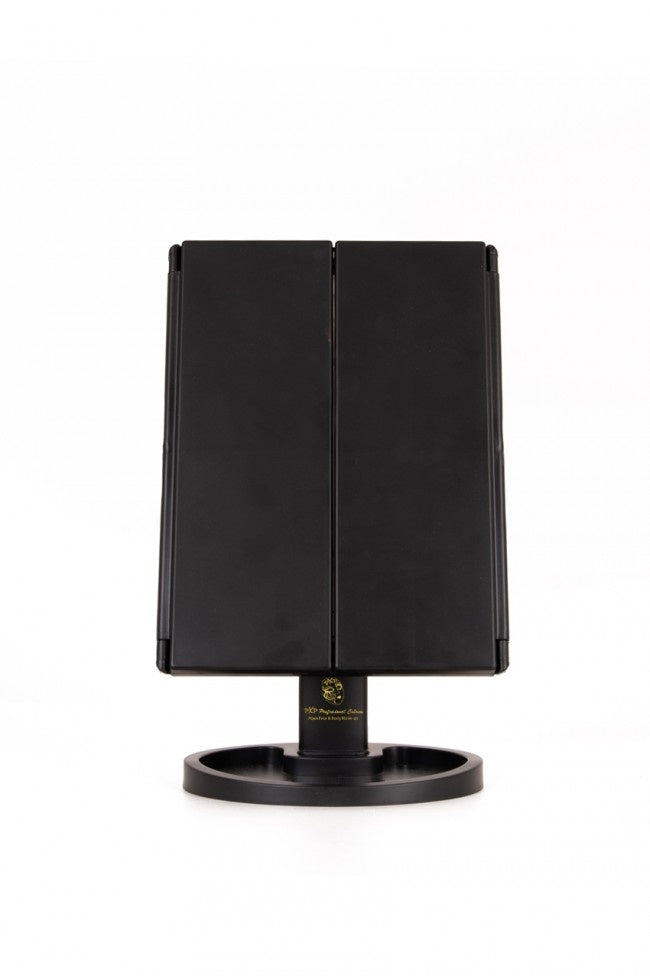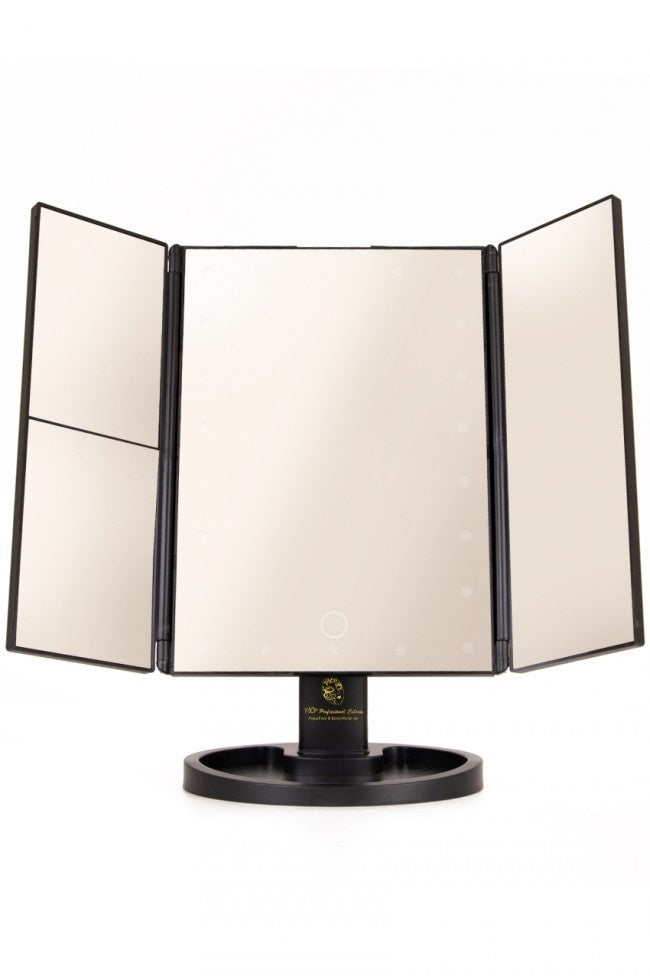 Grazie a questo specchio con illuminazione, d'ora in poi il tuo make-up / trucco sarà sempre perfetto. Questo specchio è dotato di illuminazione a LED, per cui il tuo viso è sempre perfettamente illuminato e non ti sfugge mai un dettaglio. Il design a trittico rende lo specchio pieghevole e facile da trasportare. La luce funziona con 4 batterie AAA, quindi puoi mettere lo specchio ovunque, ma puoi anche collegarlo a un cavo USB. Dimensioni: - 35 cm x 28,5 cm x 11,5 cm Colori: - nero Materiale: - plastica - specchio/vetro Illuminazione a led - 4x batterie AAA ( Escl.) - o tramite connessione USB ( Incl ) Dimensioni della confezione: -29 cm x 19 cm x 7 cm Altre informazioni: - Funzione di rotazione a 180¡ - utilizzo in verticale o in orizzontale - 22 luci LED luminose - ingrandimento 2x e 3x - Pratico vassoio per il trucco ecc.