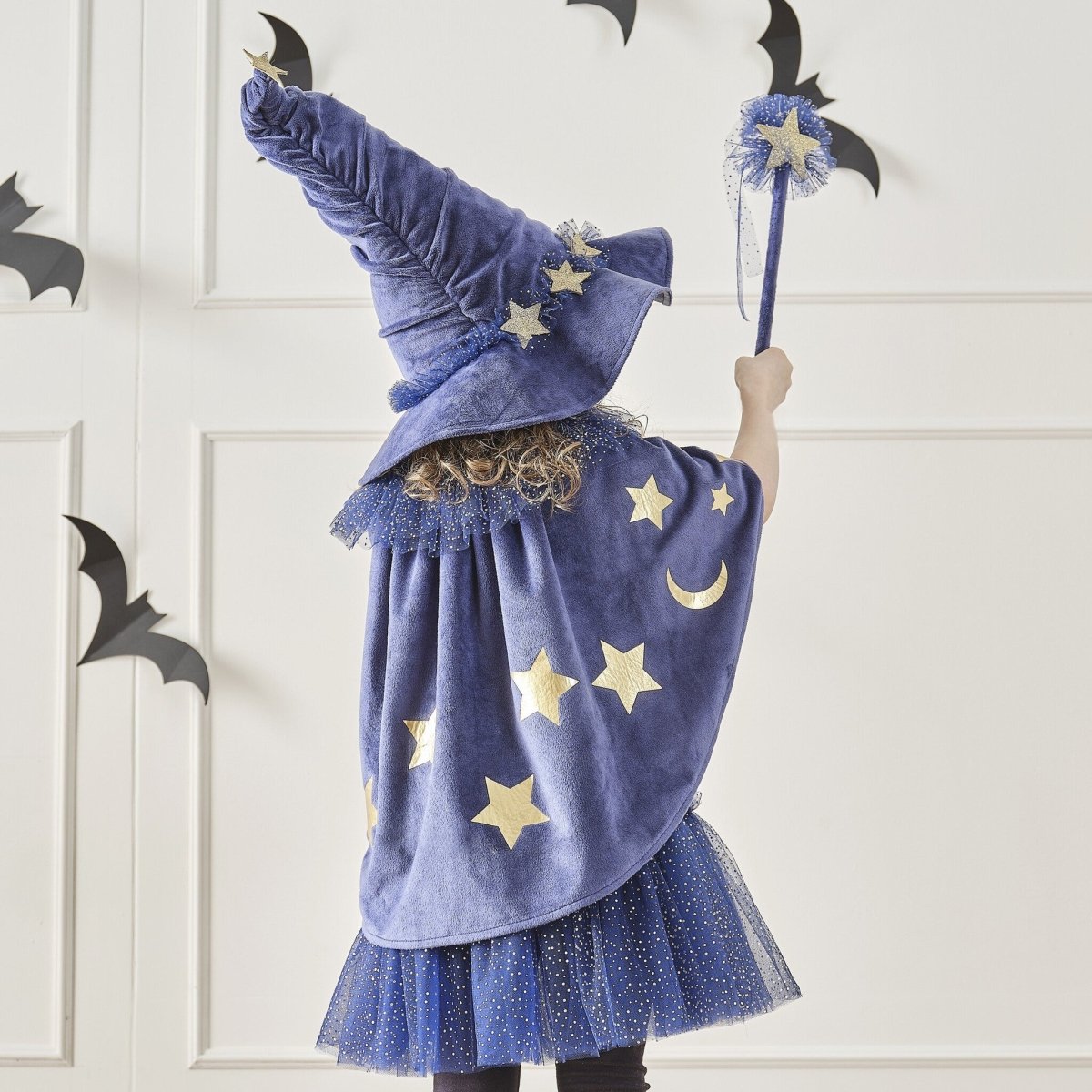 La bacchetta magica, il mantello e il cerchietto con il cappello sono venduti separatamente.
