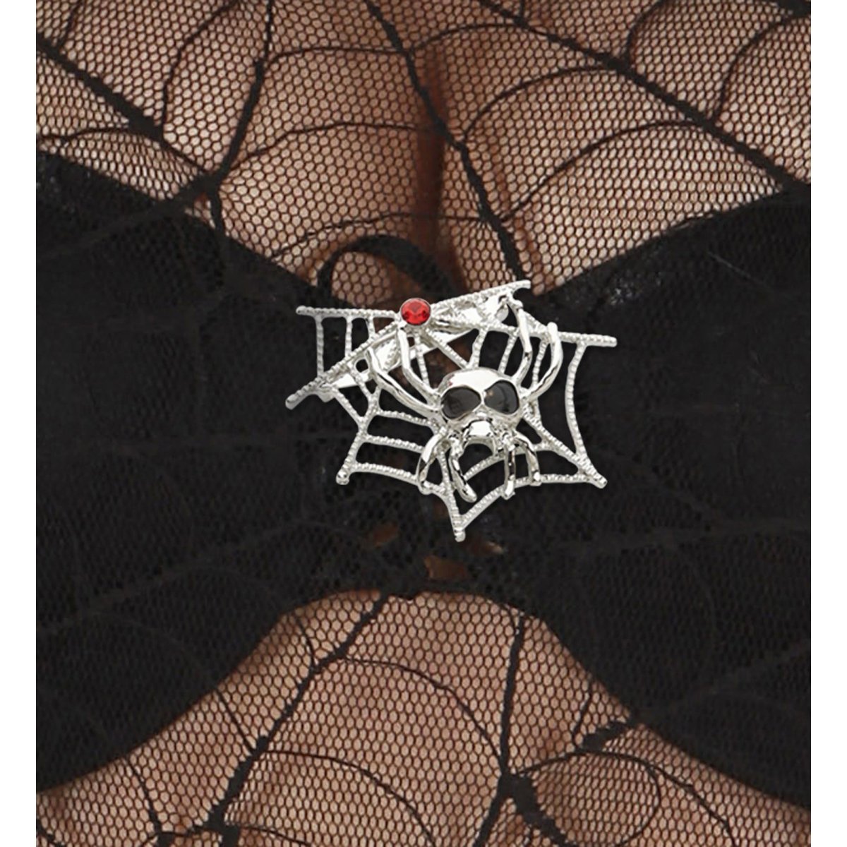 Completa il tuo abbigliamento di Halloween con questa esclusiva spilla a forma di ragnatela. Un accessorio sottile ma accattivante per feste, feste in costume o cosplay.