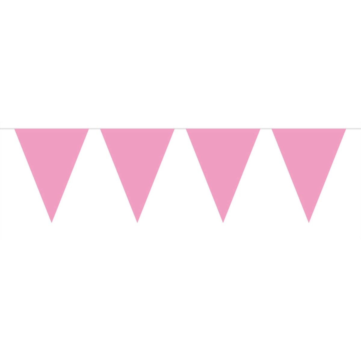 Filo per bandiere rosa baby - 10 metri. Contenuto: 1 filo per bandiere da 10 metri. Colore: rosa. Appendi questo filo per bandiere ad esempio durante un compleanno, una festa per bambini o per la nascita di una bambina. Questa ghirlanda è lunga 10 metri. Stampata su entrambi i lati, 15 bandierine da 29 cm. La bandierina è realizzata in plastica.