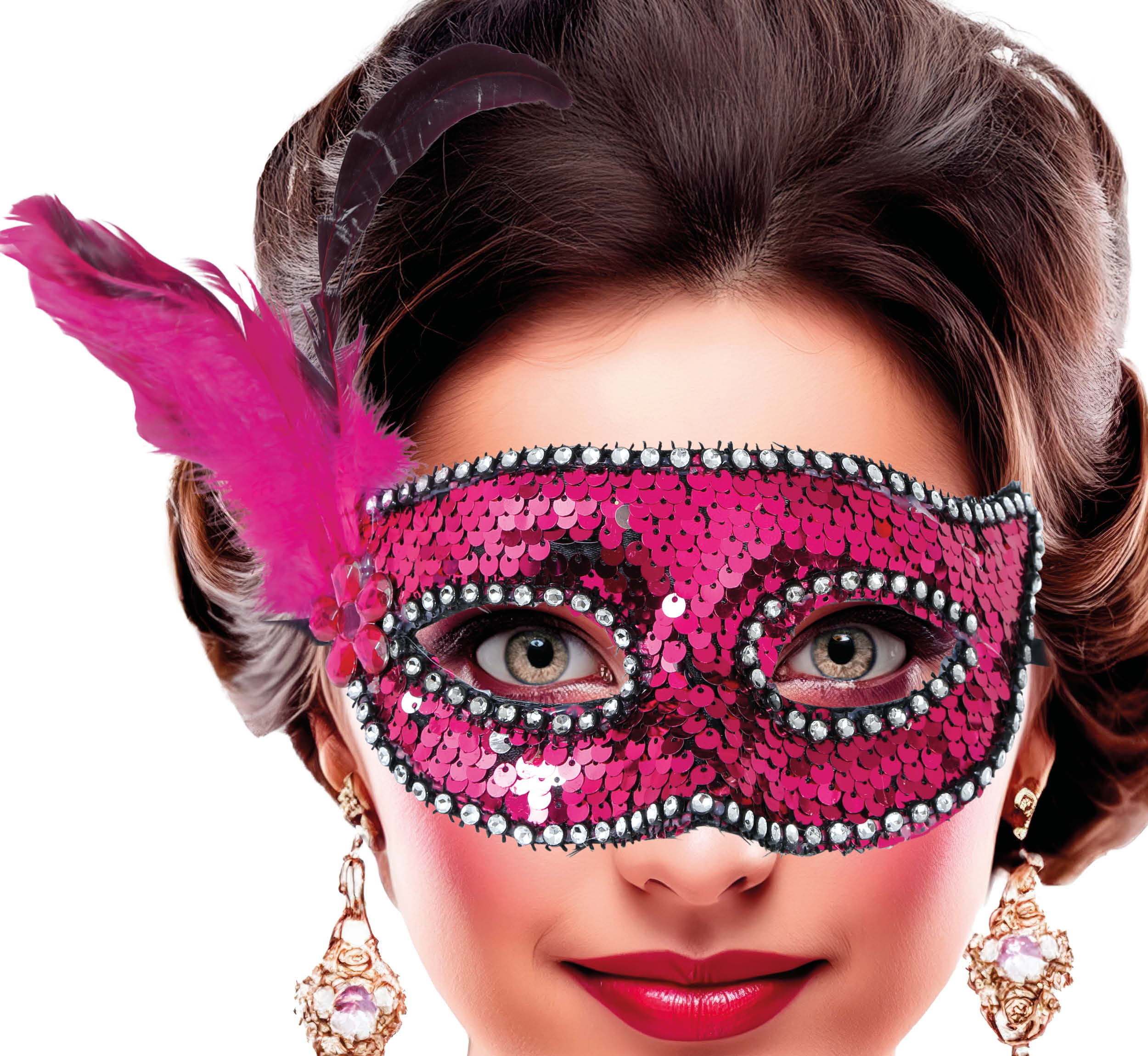 Maschera occhi rosa Piume Adulto
