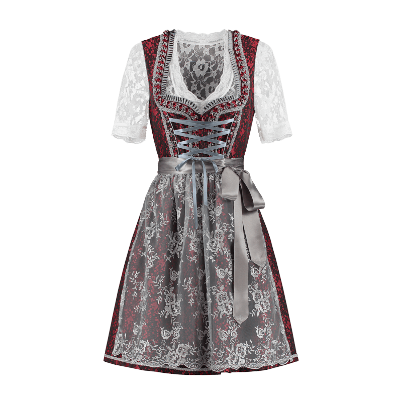 Abito Dirndl rosso argento Oktoberfest 2 pezzi