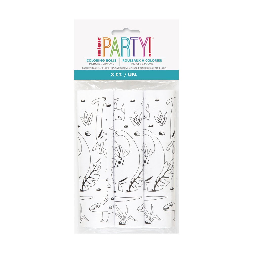 Rotoli di fogli da colorare Dino con pastelli 3 pezzi