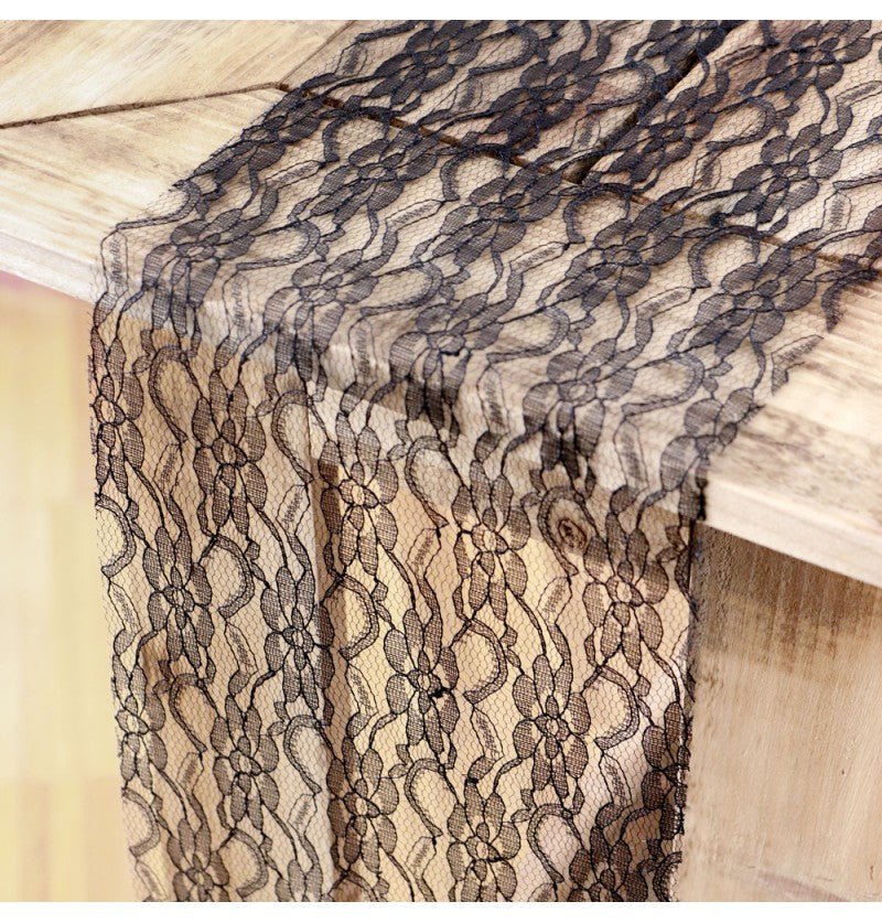 Runner da tavolo nero in pizzo da 3,1 m 3 pezzi