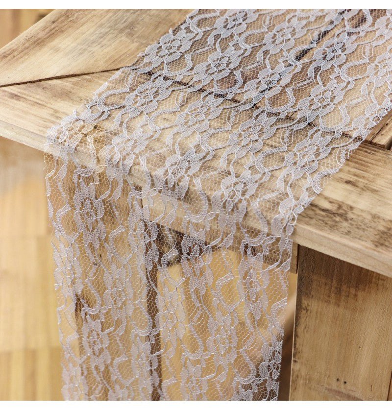 Runner da tavolo grigio in pizzo da 3,1 m 3 pezzi