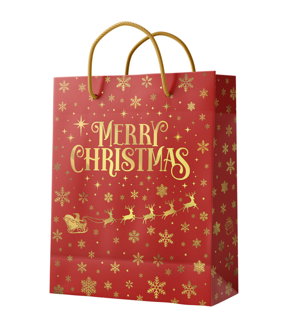 Dai un aspetto festoso ai tuoi regali di Natale con questa Borsa regalo Buon Natale di colore rosso. Il sacchetto è realizzato in carta e plastica robusta e ha un formato pratico, perfetto per regali di medie dimensioni. Grazie al suo design allegro, trasformerai ogni regalo in un vero e proprio richiamo visivo sotto l'albero di Natale.