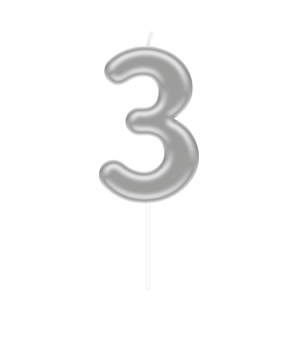 Festeggia con stile ogni traguardo con questa candela numerica argento "3". Perfetta per segnare età, anniversari o altre occasioni speciali. Il colore argento lucido fa risaltare la candela su qualsiasi torta o cupcake
