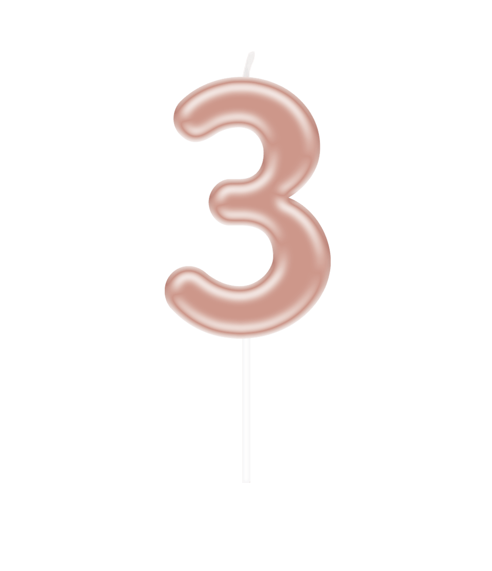 Festeggia con stile ogni traguardo con questa candela numerica in oro rosa "3". Perfetta per segnare età, anniversari o altre occasioni speciali. Il colore oro rosa brillante fa risaltare la candela su qualsiasi torta o cupcake.