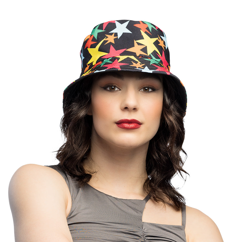 Completa il tuo outfit con l'accattivante Bucket Hat Stars. Il design retrò del cappello da pescatore combinato con il colorato motivo a stelle rende ogni outfit da festa un vero schianto. Perfetto per festival, feste in spiaggia, feste maliziose, carnevale o feste a tema anni '90.