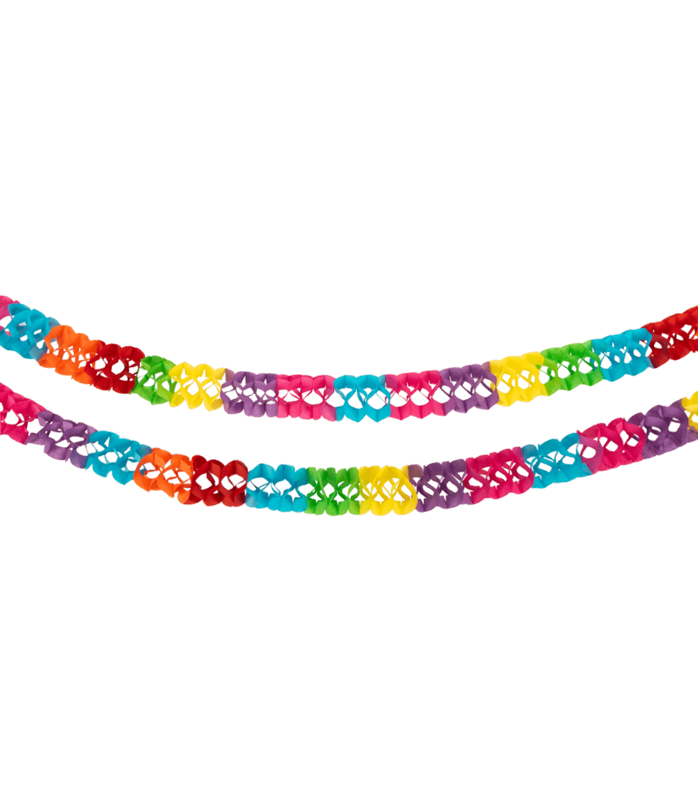 Le ghirlande di carta sono un must di ogni negozio di articoli per feste e la ghirlanda di carta - 2 pezzi per sedie non fa eccezione! Con questi colori allegri, queste ghirlande sono perfette per decorare la sedia del festeggiato. Con una lunghezza di 2,5 metri e 2 ghirlande per confezione, sarai sicuro di avere tante decorazioni. Oltre a queste ghirlande di carta, da noi troverai altri tipi di ghirlande. Assicurati di presentarle insieme nel negozio, in modo che i clienti possano vedere subito cosa è disponibile.