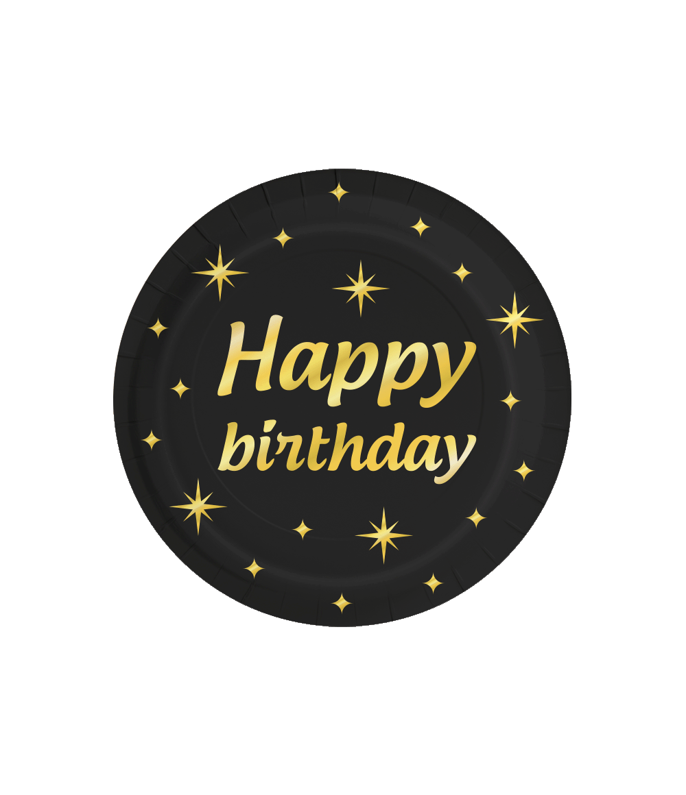 Piatti di Buon Compleanno Oro Nero 23cm 8 pezzi