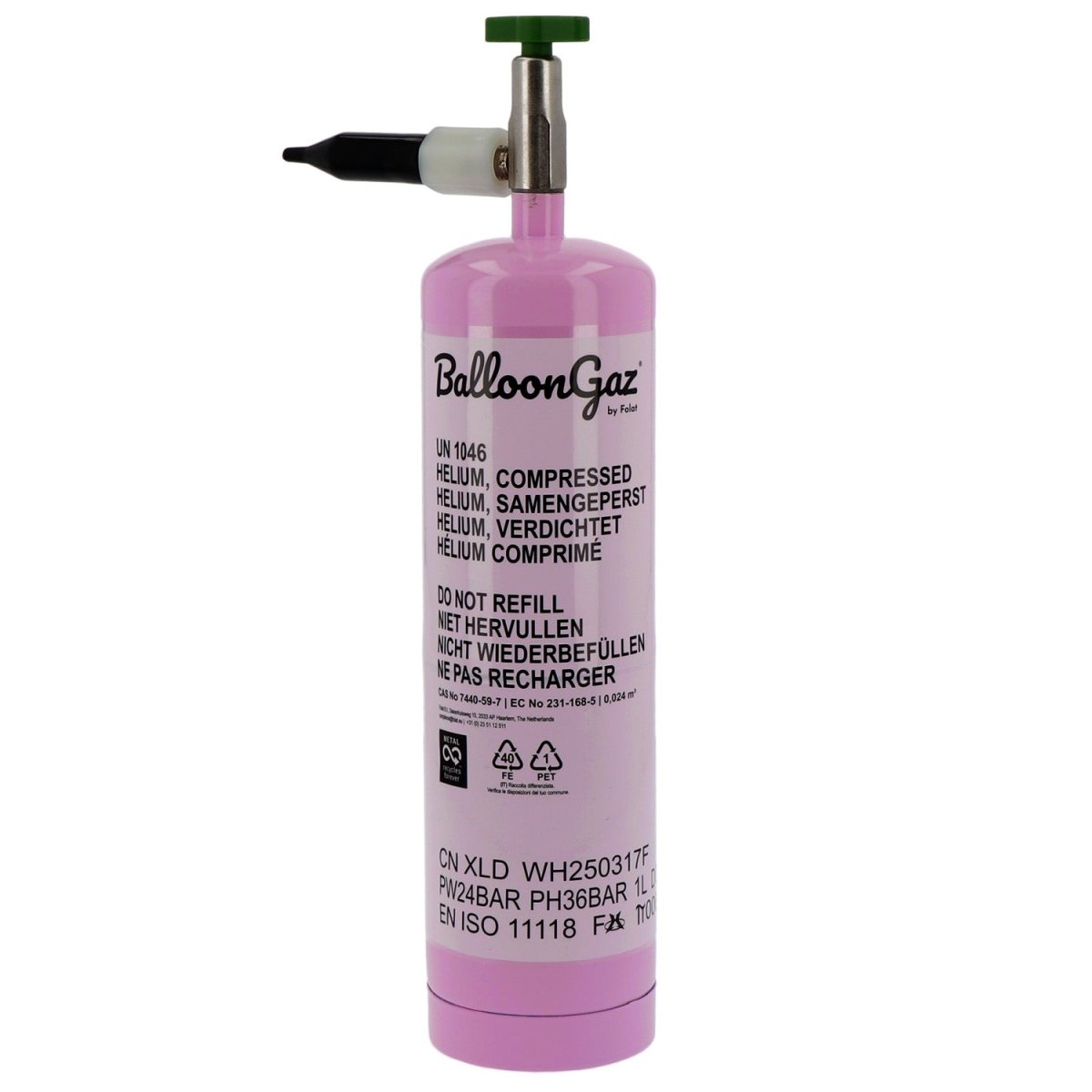 Contenuto: 0,024 m3 di gas elio (purezza 99%)