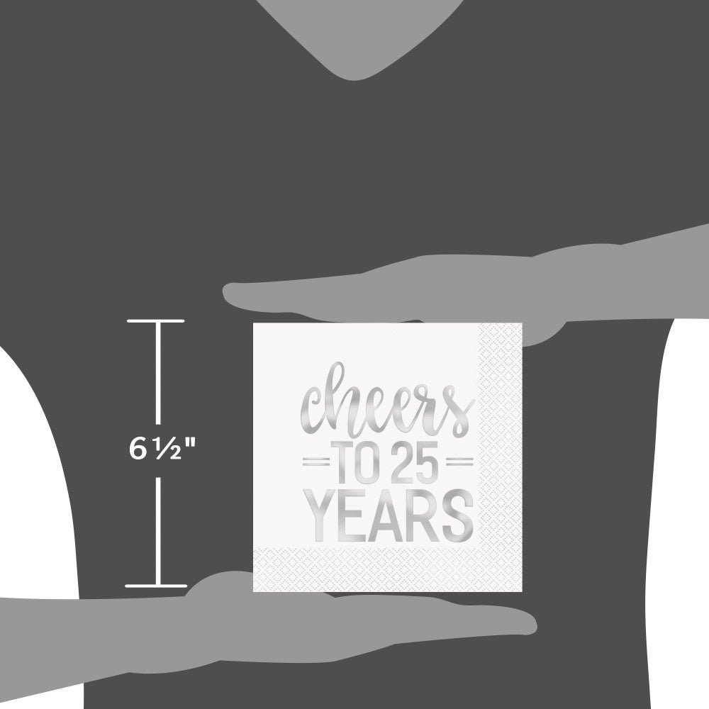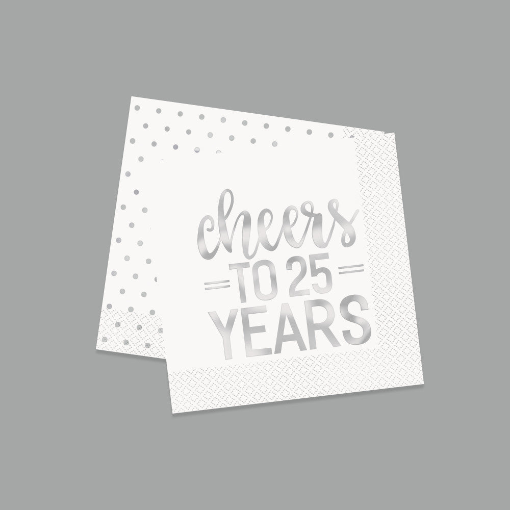 Tovaglioli Cheers To 25 Year Argento 25cm 16pz