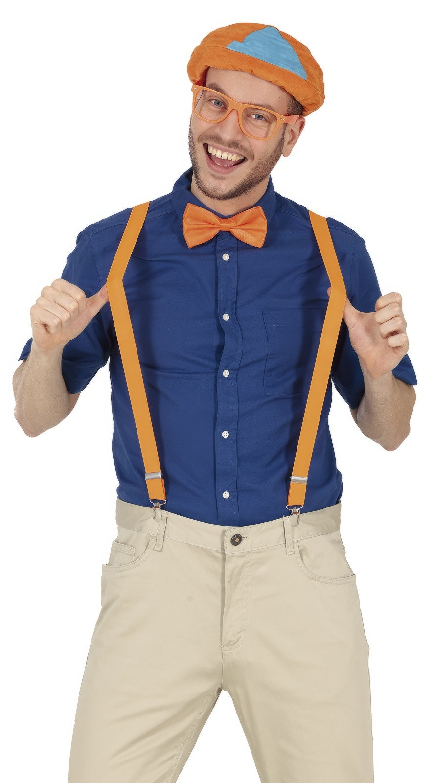 Contenuto: Berretto, papillon, bretelle, occhiali - Colore: Arancione - Ignifugo: Sì - Materiale: Poliestere, PVC