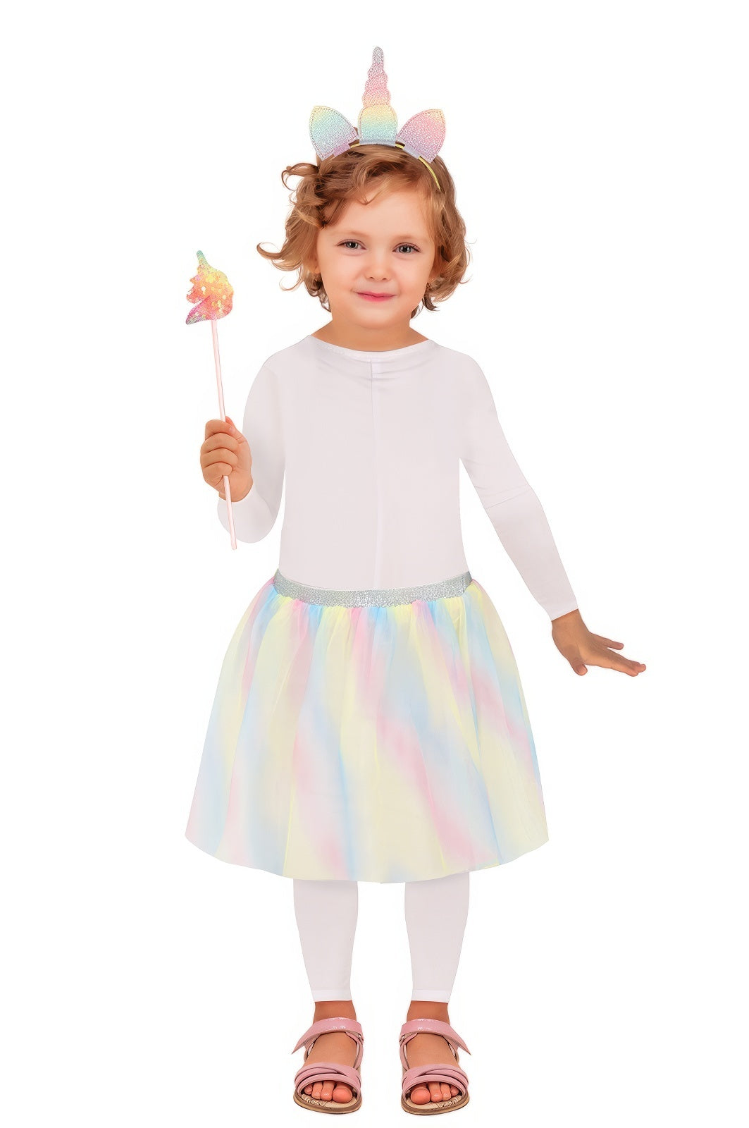 Set di costumi da unicorno colorati per bambina 3 pezzi