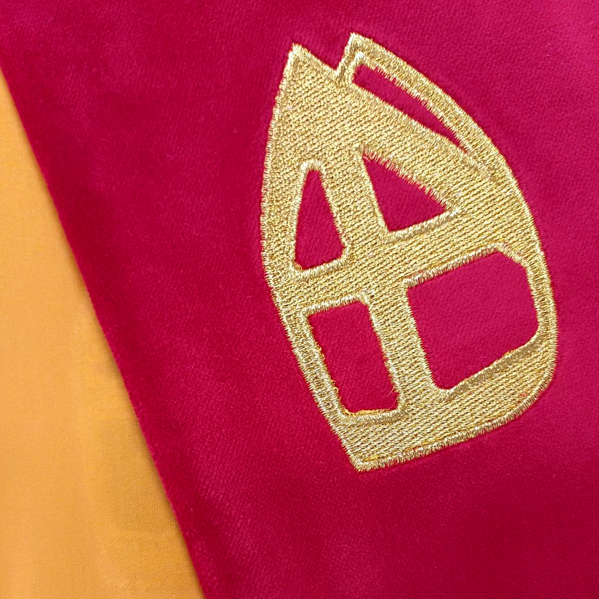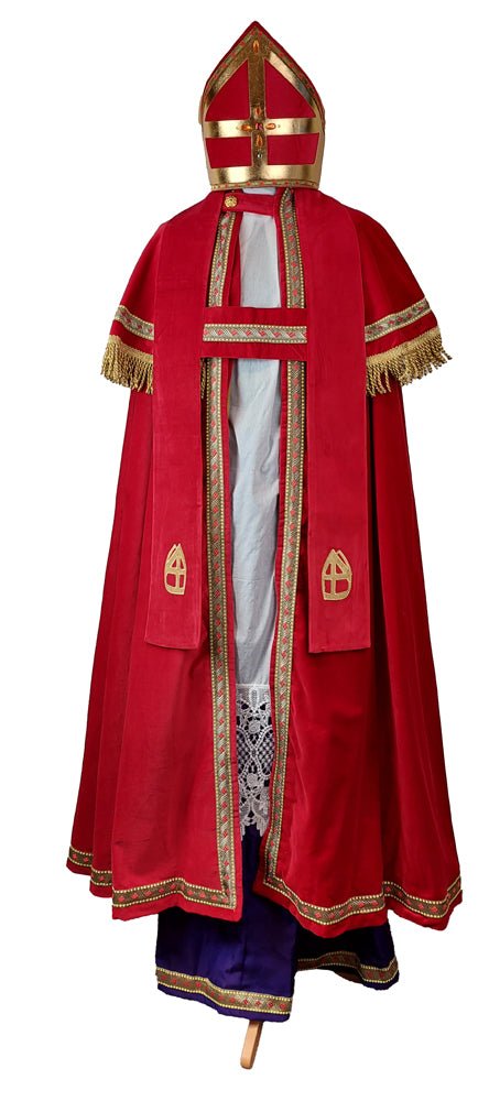 Immergiti completamente nella magia delle celebrazioni di Sinterklaas con questo bellissimo costume da Sinterklaas in velluto. Il ricco colore rosso e i dettagli dorati creano un look autentico e festoso. Il costume è composto da tre parti: un mantello, una sottoveste e una stola - perfetto per un look da Santo completo.