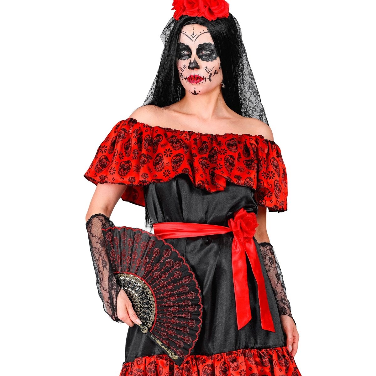 Aggiungi un tocco di eleganza al tuo abbigliamento con questo classico ventaglio spagnolo. Il design rosso e nero conferisce un look elegante e accattivante, perfetto per il ballo, le feste in maschera o come accessorio decorativo.