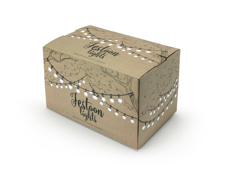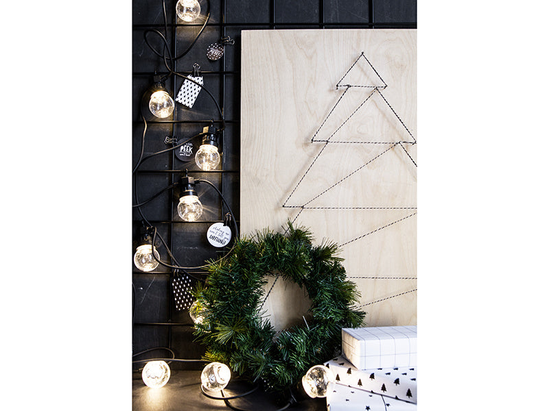 Festoni a LED, trasparenti su filo nero, lunghezza del filo con le luci circa 5 metri, filo aggiuntivo circa 3 metri, 10 luci rotonde, colore della luce bianco caldo. Adatto sia per l'interno che per l'esterno. Le luci non possono essere collegate ai set di luci. Non include la spina UK.