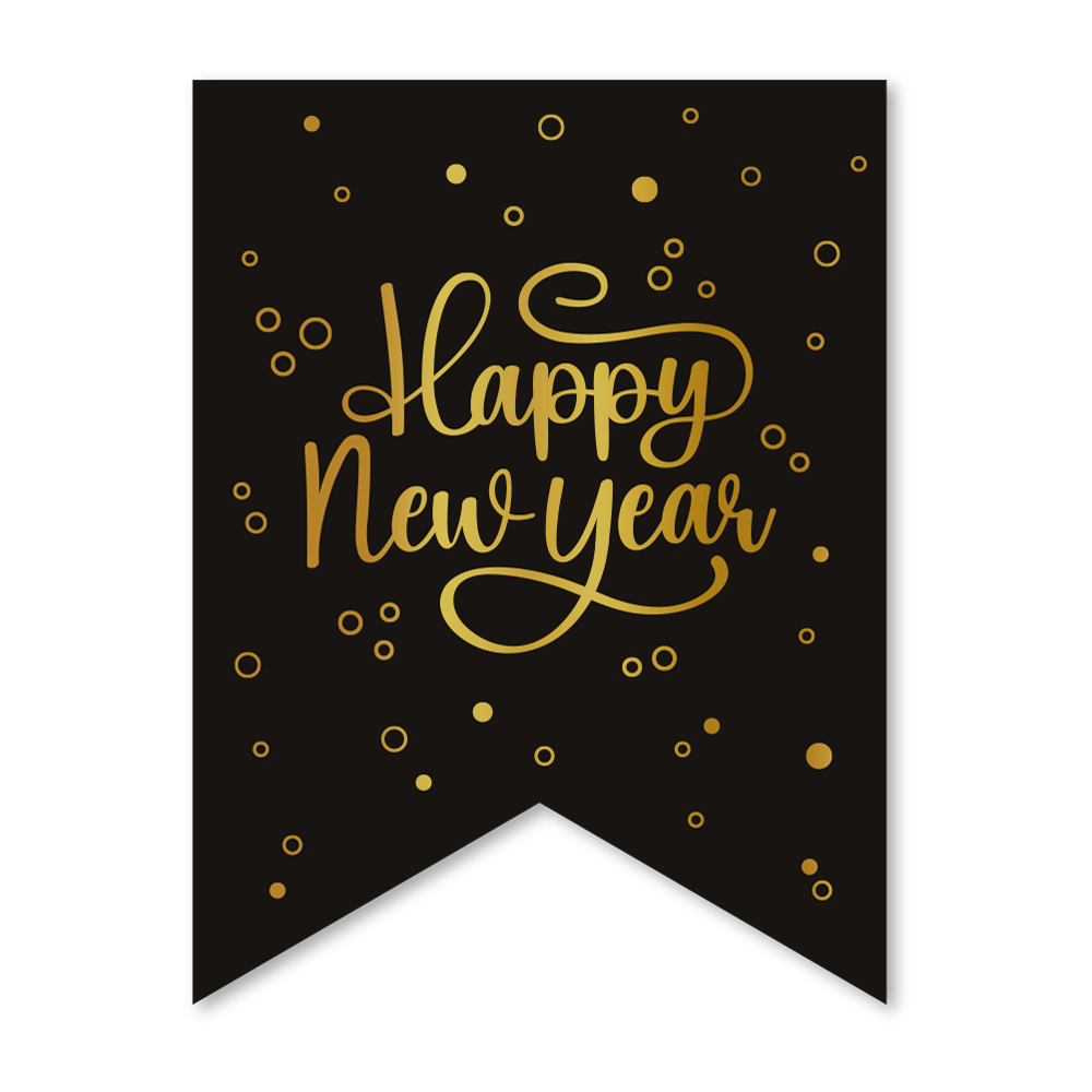 Festeggia il nuovo anno con stile grazie a questo striscione festivo! Realizzato con eleganti dettagli neri e oro, questo striscione conferisce immediatamente un'atmosfera lussuosa a qualsiasi festa o interno. Perfetto come decorazione per la notte di San Silvestro o per una festa di Capodanno.