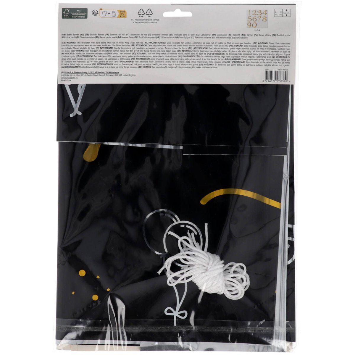 C'è un compleanno! Striscione stradale - Shining Glam - 160 x 50 cm. Contenuto: 1 striscione. Da utilizzare ad esempio durante le seguenti occasioni di festa: Compleanno. Con questo striscione, tutto il quartiere sa che è il compleanno di qualcuno. Lo striscione presenta le parole "HAPPY" e "BIRTHDAY" stampate in oro lucido e circondate da simboli della festa in argento lucido. Tra le parole, l'età può essere attaccata con gli adesivi numerici in oro lucido inclusi: 2 numeri da 0 a 9 con un'altezza di 14,5 cm. Ai quattro angoli è presente un rivetto in metallo. sono incluse 4 corde bianche in poliestere di 1 metro ciascuna. Questa decorazione da appendere appartiene alla collezione Shining Glam di
