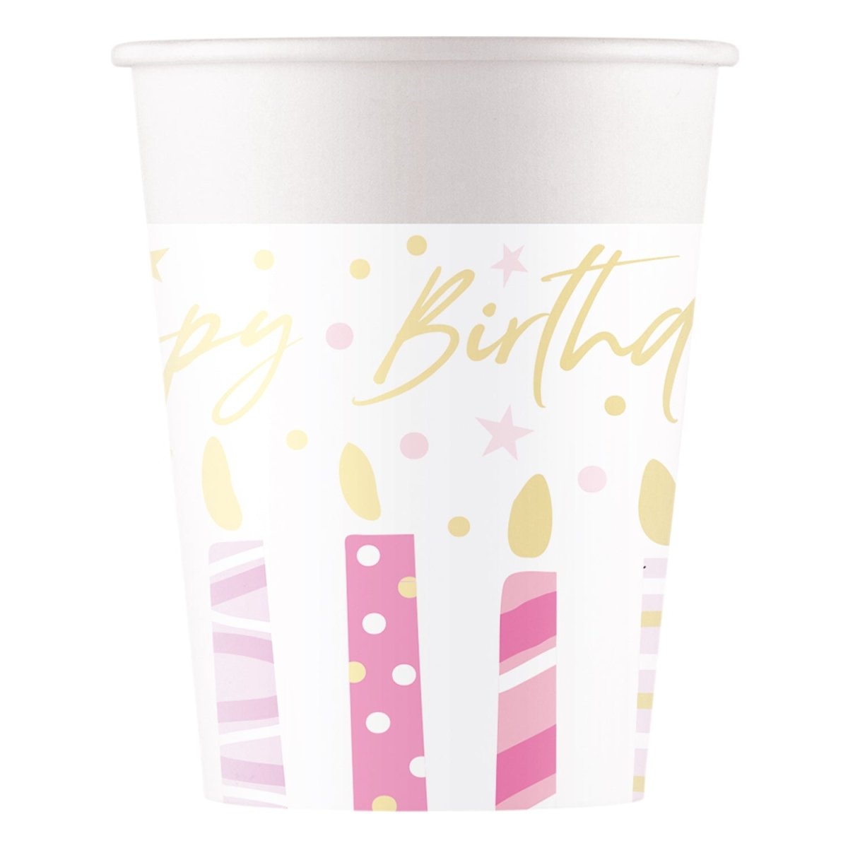 Candele a coppa di Buon Compleanno 200ml 8 pezzi