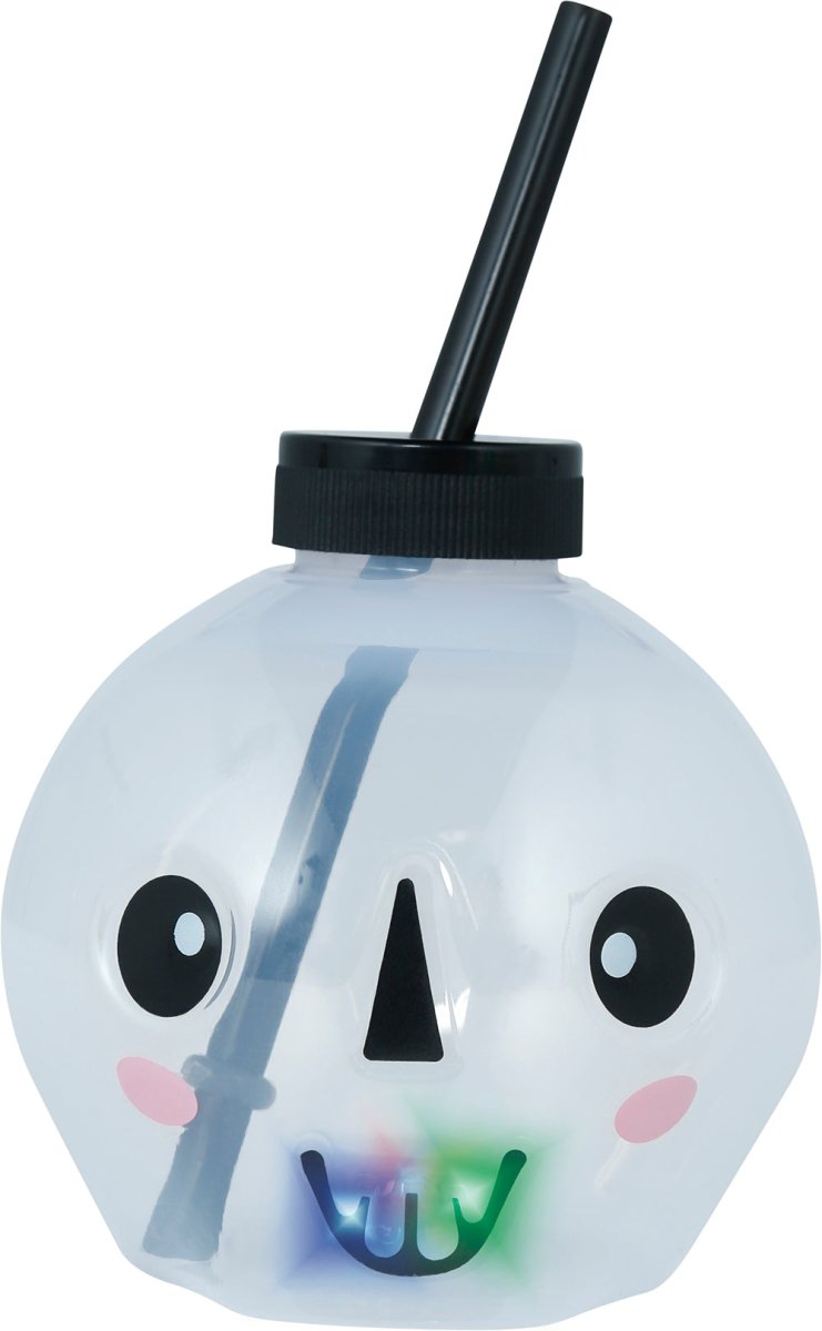Bevi la tua bevanda preferita in vero stile horror con questa tazza di Halloween con design a scheletro. La tazza è dotata di una luce LED incorporata che crea un effetto emozionante al buio, perfetto per le feste di Halloween o le serate a tema. Con un'altezza di 17 cm, la tazza si adatta comodamente alla mano ed è adatta a diverse bevande. Realizzata in robusto PVC, è riutilizzabile e leggera