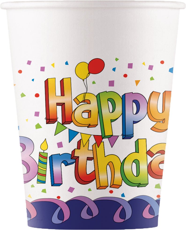 Tazze di Buon Compleanno Colorate 200ml 8pz