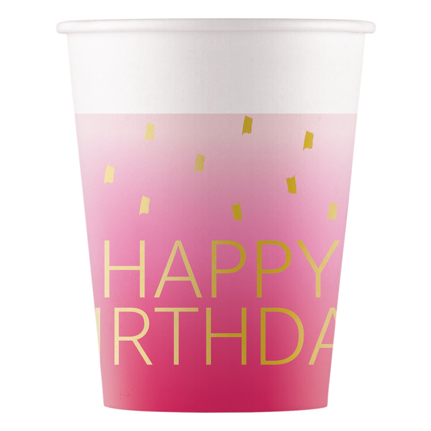 Tazze di Buon Compleanno Oro Rosa 200ml 8 pezzi