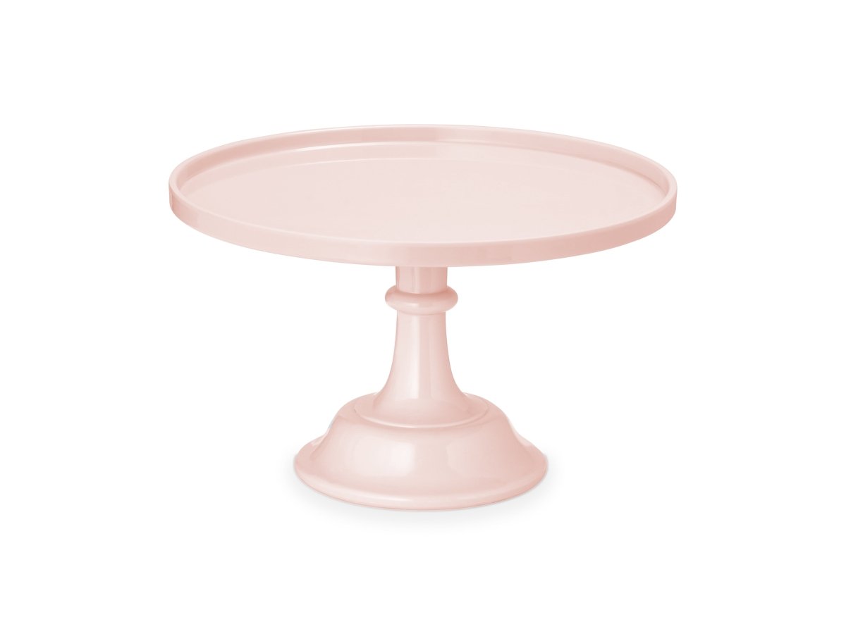 Piatto dolce su gamba di colore rosa chiaro, diametro di circa 24 cm e altezza di circa 14,5 cm