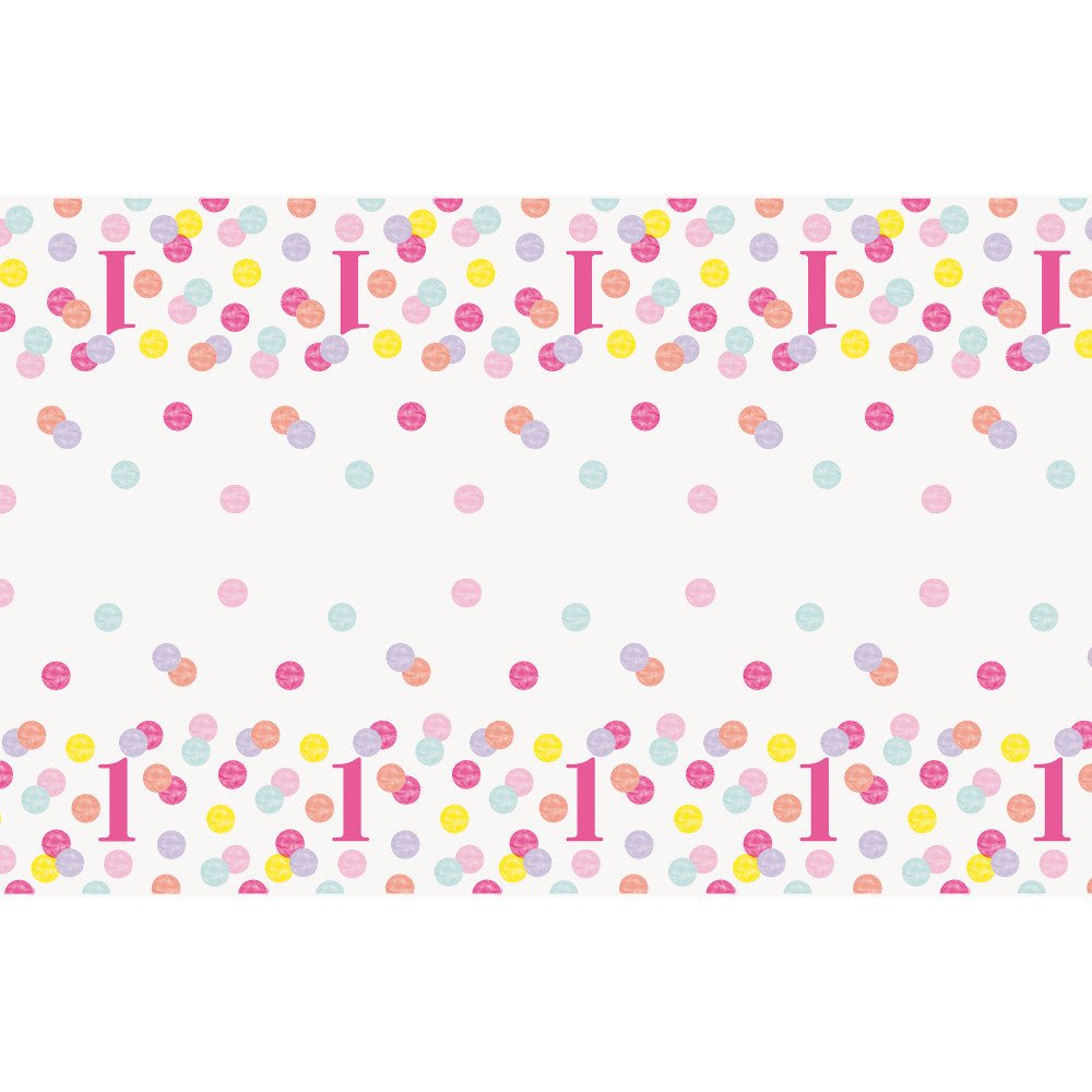 Tovaglia di compleanno 1 anno a pois 2,13 m
