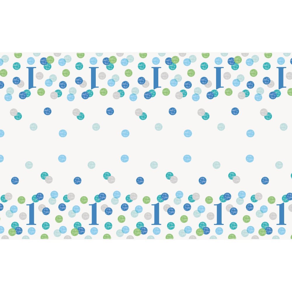 Tovaglia per compleanno 1 anno a pois blu 2,13 m