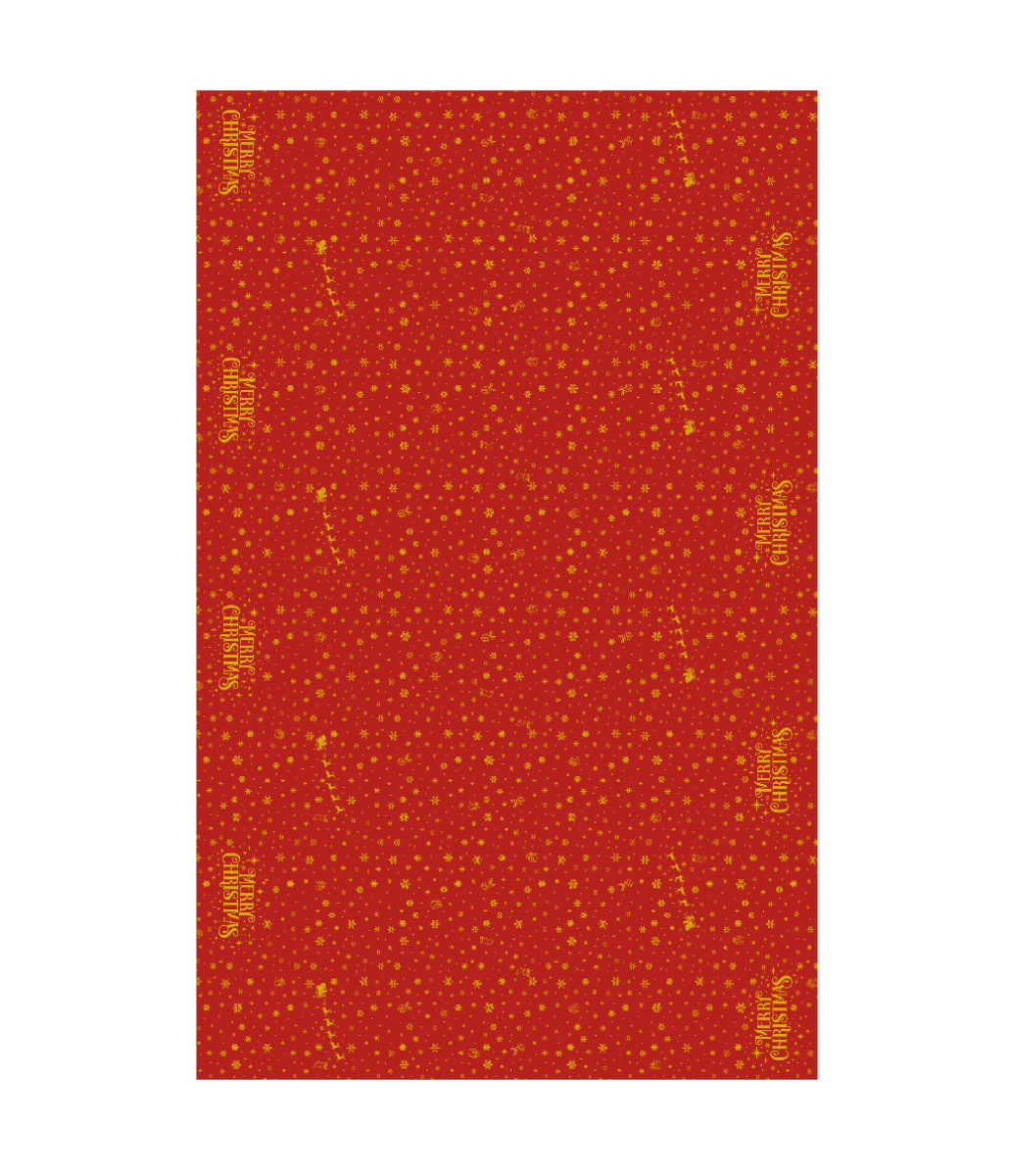 Colore/disegno: rosso con figure natalizie (Babbo Natale, albero, regali, omini di biscotti)