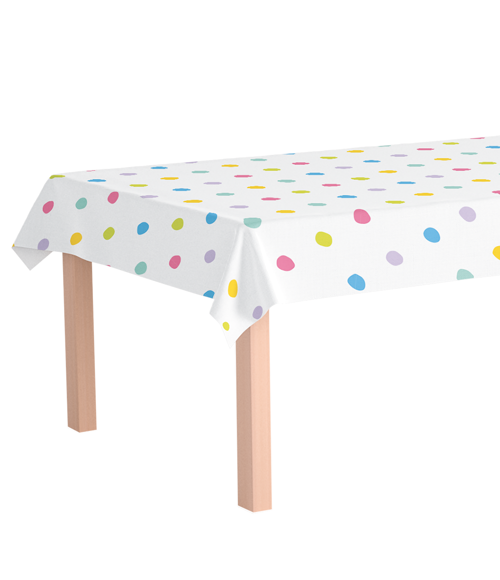 Porta subito colore e allegria su ogni tavola delle feste con la Tavola - Puntini per feste! Questa spaziosa tovaglia in PE che misura 137 × 274 cm è perfetta per le feste dei bambini, i compleanni, le feste scolastiche e tutte le occasioni che richiedono un po' di colore in più. La giocosa stampa a pois crea immediatamente un'atmosfera allegra ed è la base ideale per una festa a tema colorato.