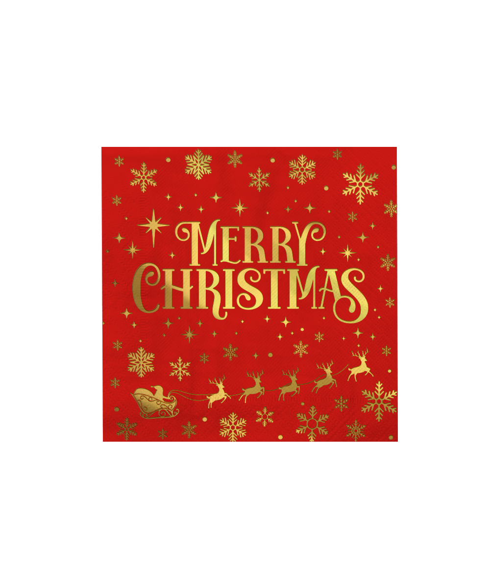 Completa la tavola di Natale con questi eleganti tovaglioli rossi con stampa dorata Merry Christmas . I tovaglioli sono realizzati in carta e aggiungono immediatamente un'atmosfera festosa a qualsiasi cena, brunch o aperitivo natalizio