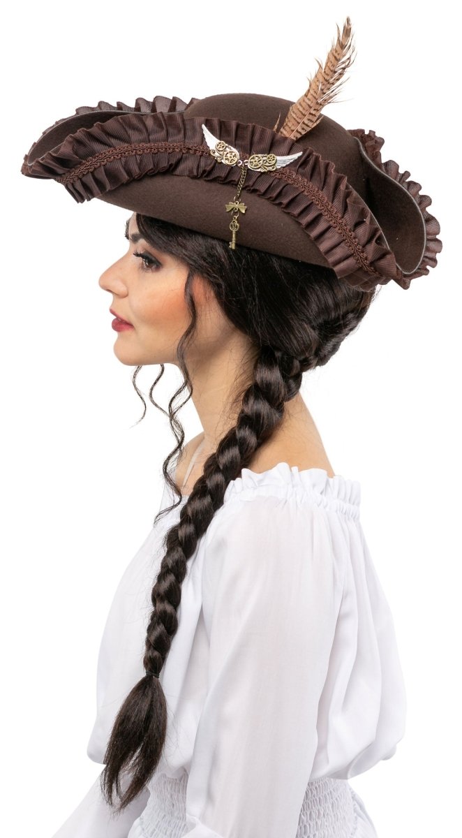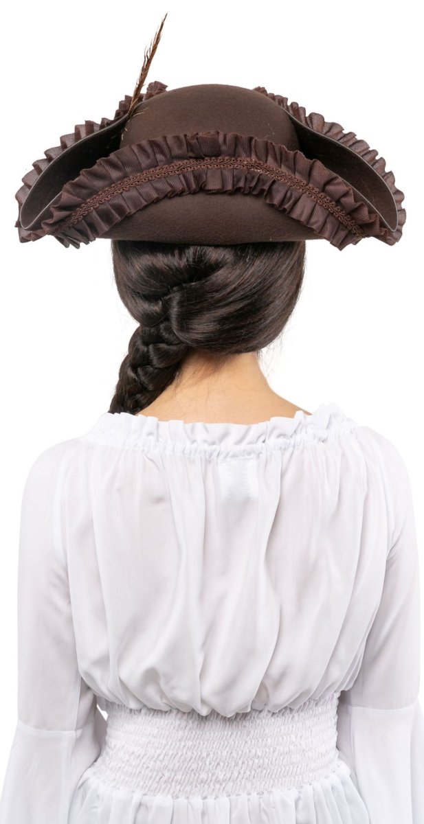 Three-spot O'Malley brown Driespits hoed Colour: brown Materiale: 100% poliestere Los accessoire Ideale per feste in maschera, feste a tema, carnevali o costumi storici Dona un look classico e autentico Perfetto come complemento di un costume da pirata o storico.