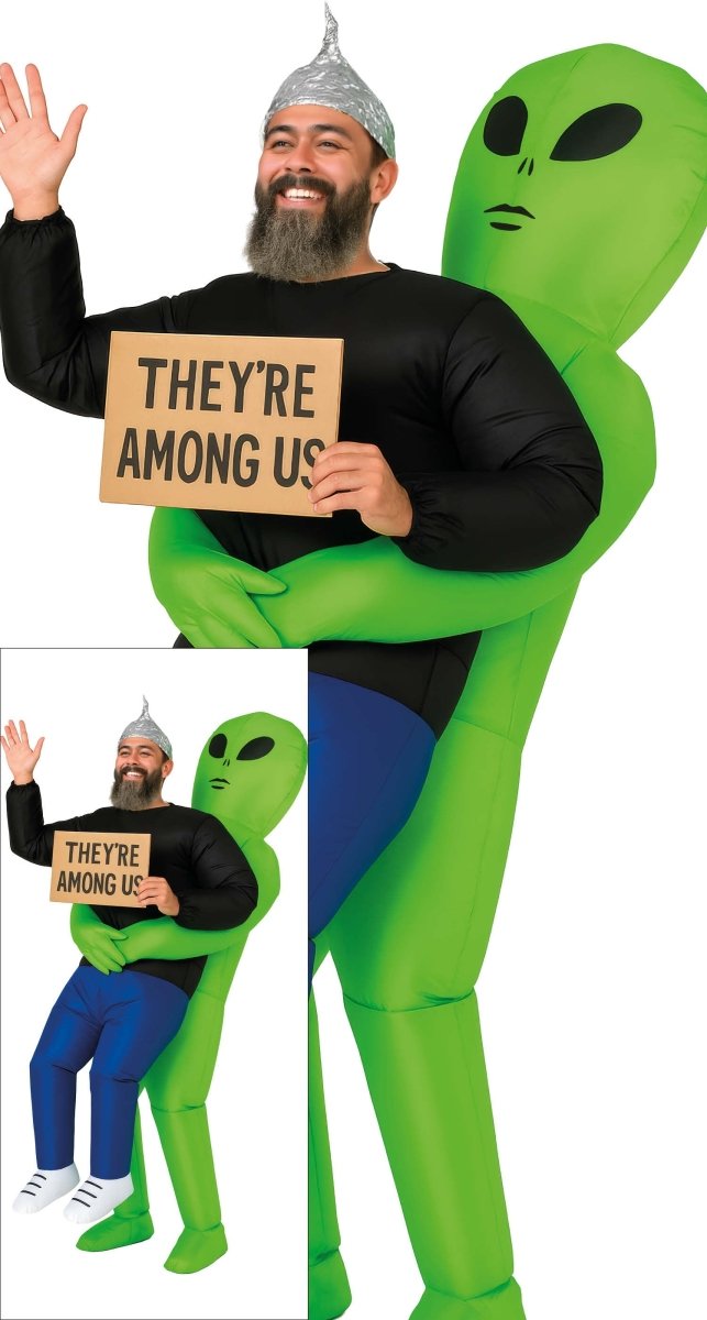 Fatti notare a qualsiasi festa con questo esilarante costume da Carry Me in cui sembra che un alieno ti stia portando in giro! Grazie al ventilatore incorporato, il costume si gonfia facilmente e rimane in forma per tutta la sera. Perfetto per feste in maschera, carnevali o festival