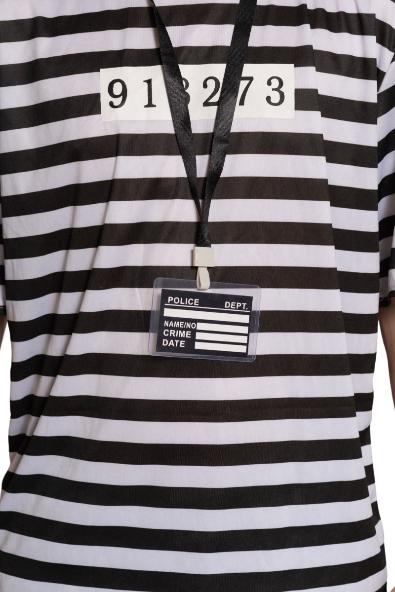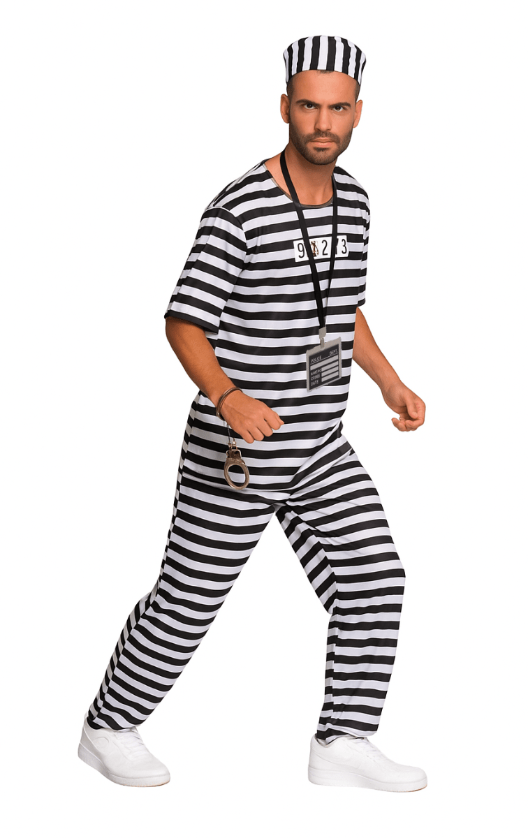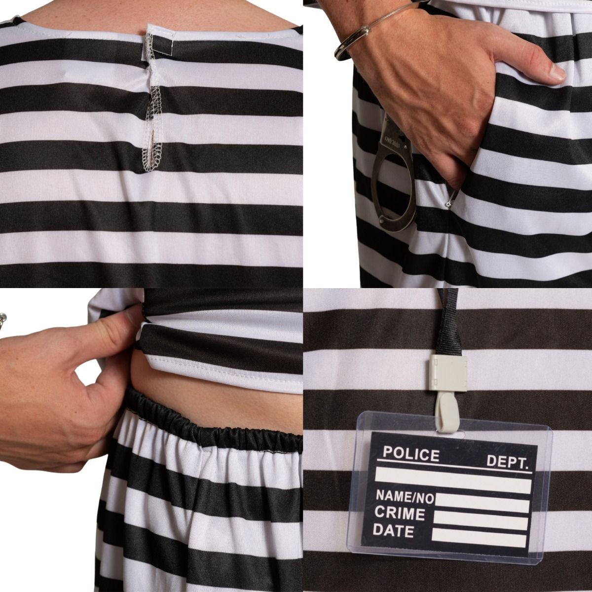 Scegli il classico look da carcerato con questo costume da uomo a righe bianche e nere. Perfetto per carnevale, feste in maschera, feste sbagliate o addii al celibato