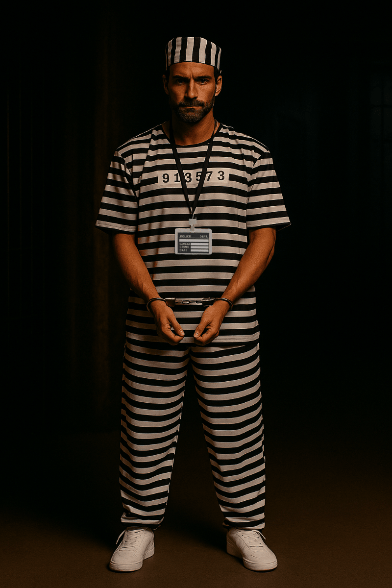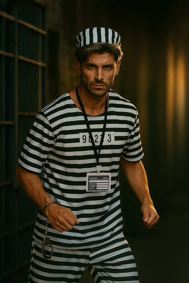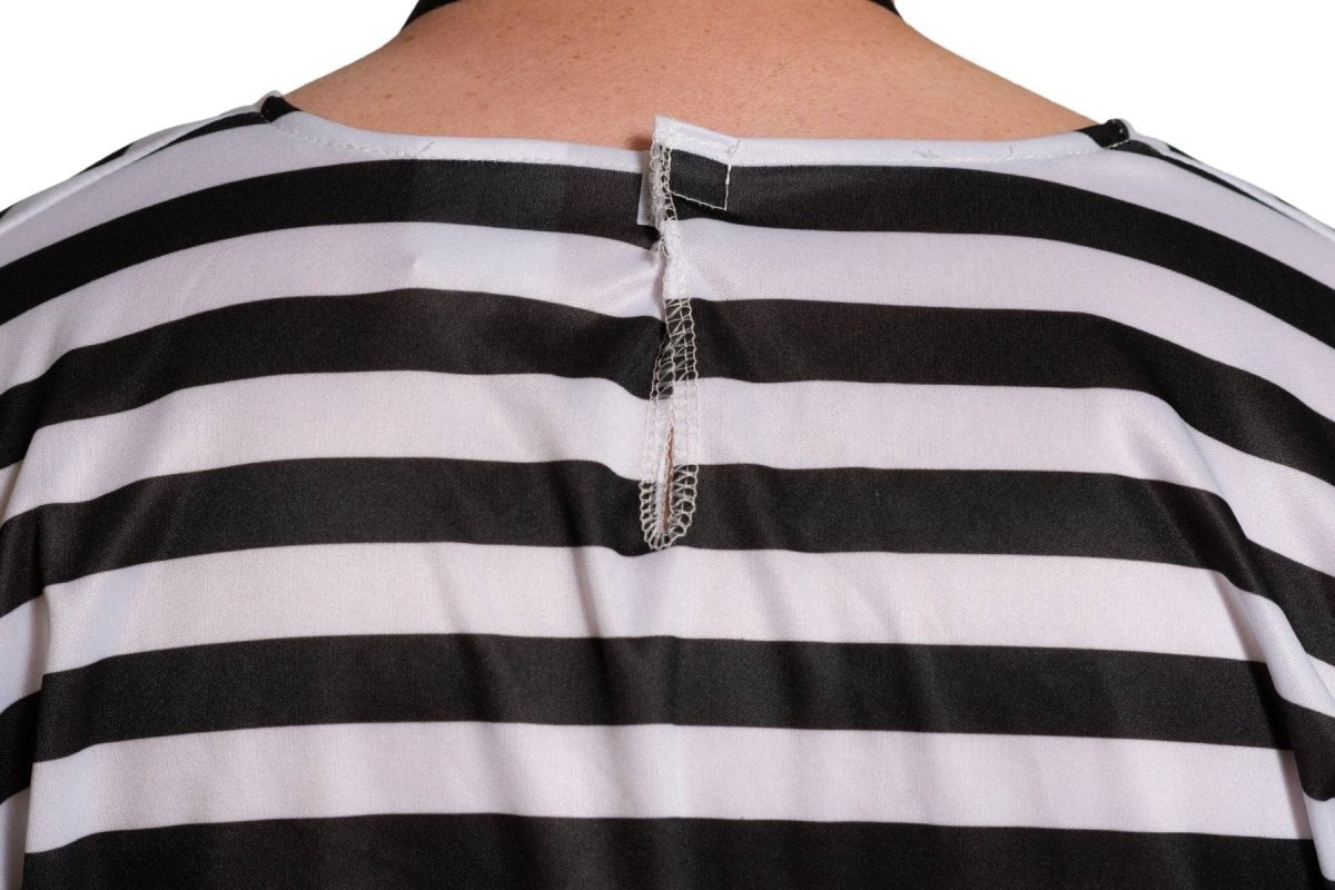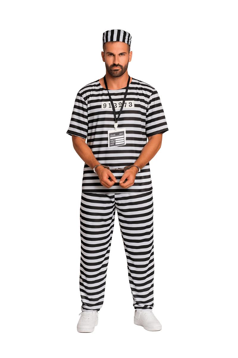Scegli il classico look da carcerato con questo costume da uomo a righe bianche e nere. Perfetto per carnevale, feste in maschera, feste sbagliate o addii al celibato