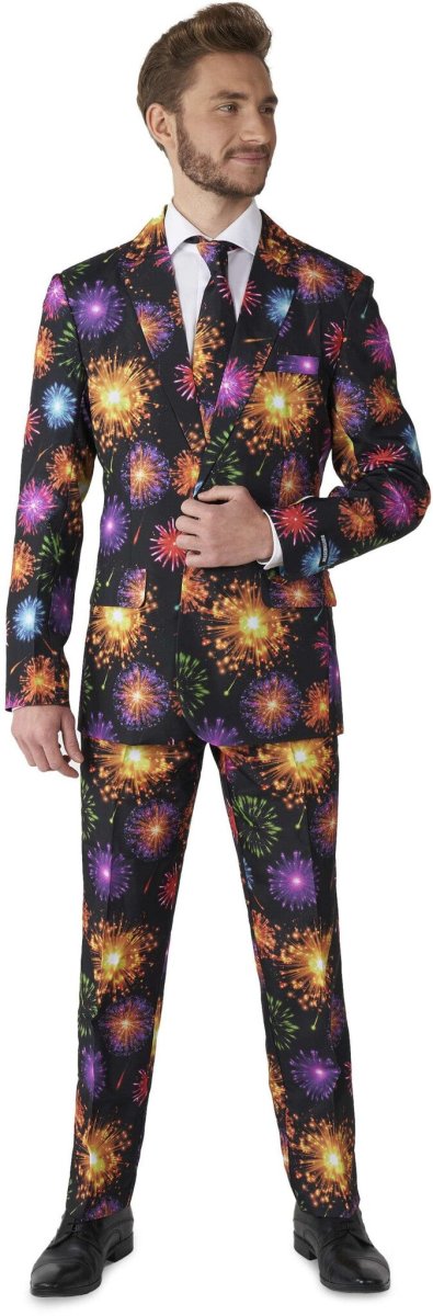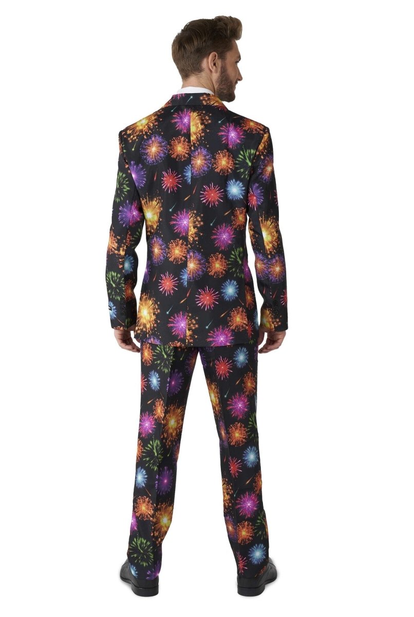 Quando i fuochi d'artificio iniziano a brillare, sai che hai per le mani una festa da urlo. Allora perché non prepararsi per l'occasione con questo costume fiammeggiante? Rendi ogni giorno una festa a NYE o il 4 luglio indossando il costume da fuochi d'artificio definitivo.... BANG! Il completo slim fit è composto da giacca, pantaloni e cravatta. I pantaloni hanno una cintura regolabile in vita per una vestibilità perfetta.