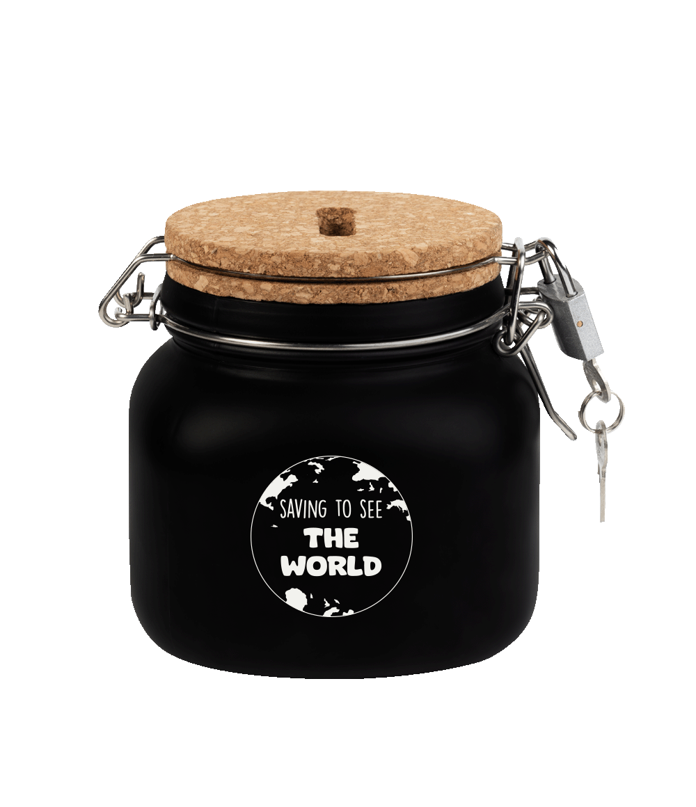 Salvadanaio nero Risparmio per vedere il mondo 12,5 cm